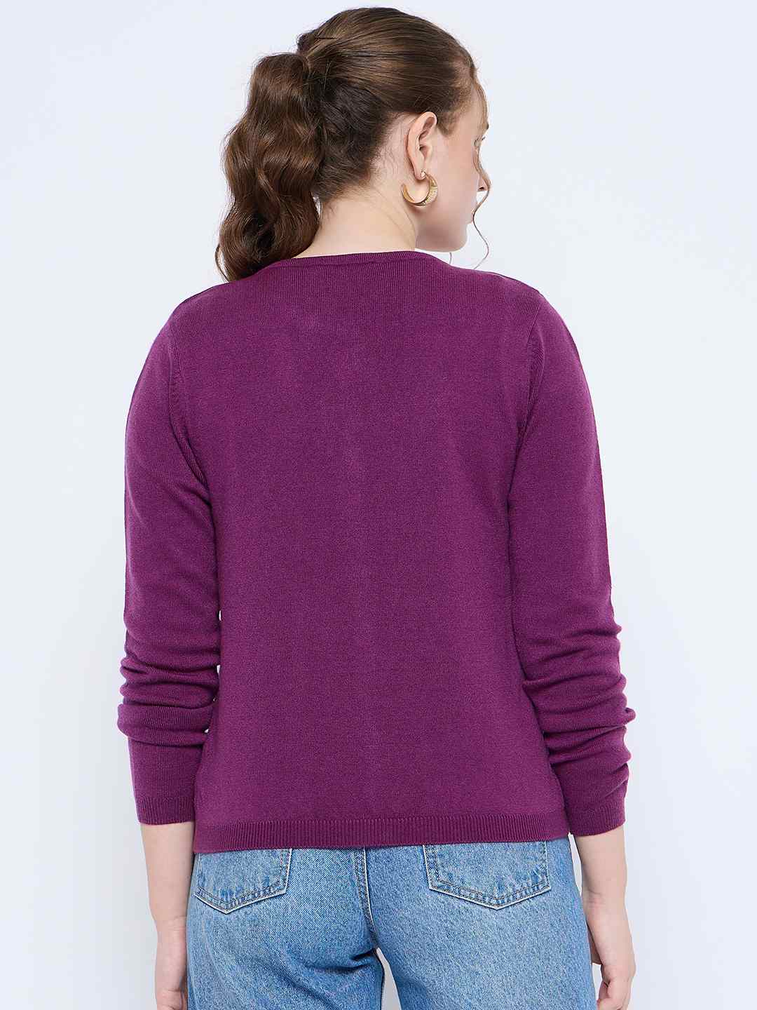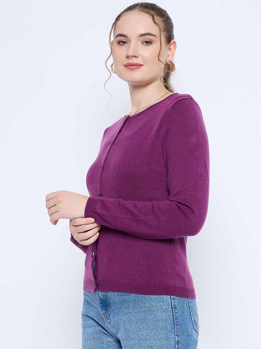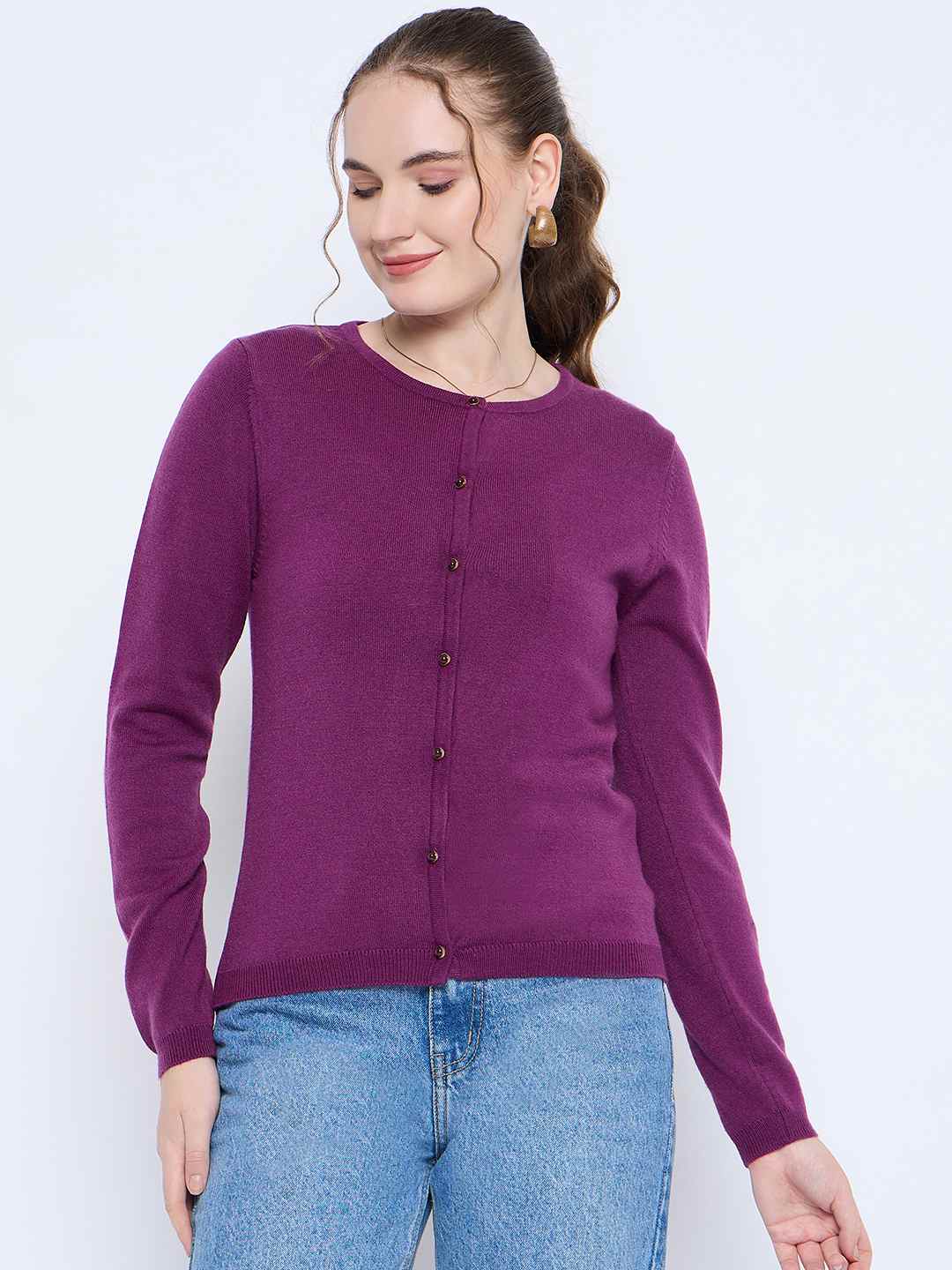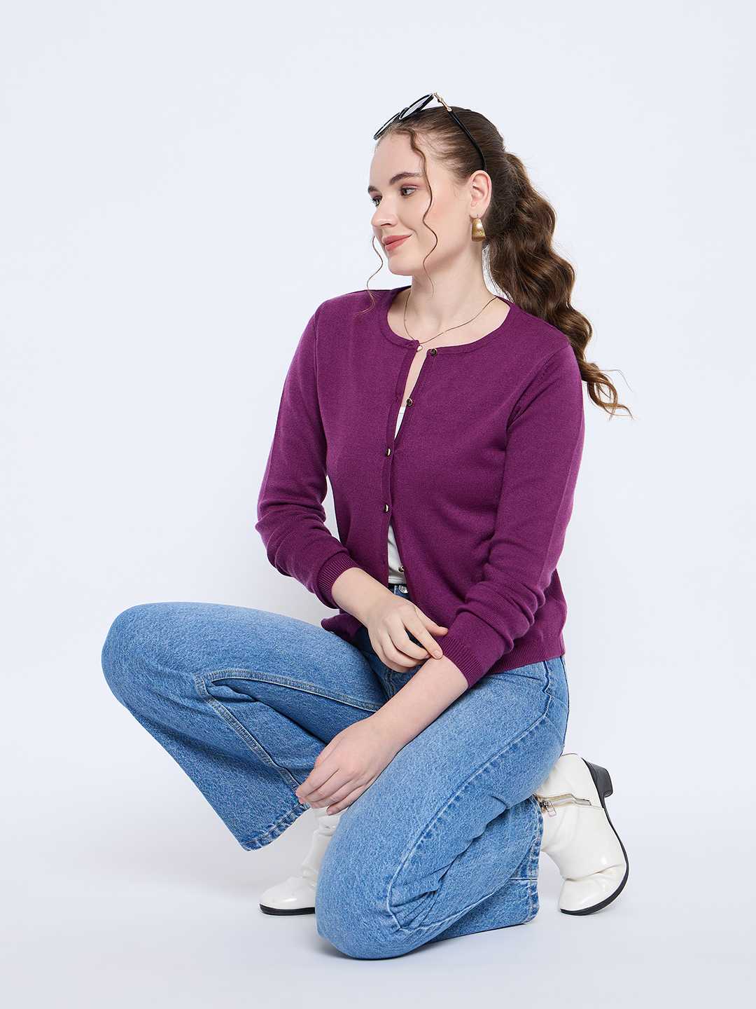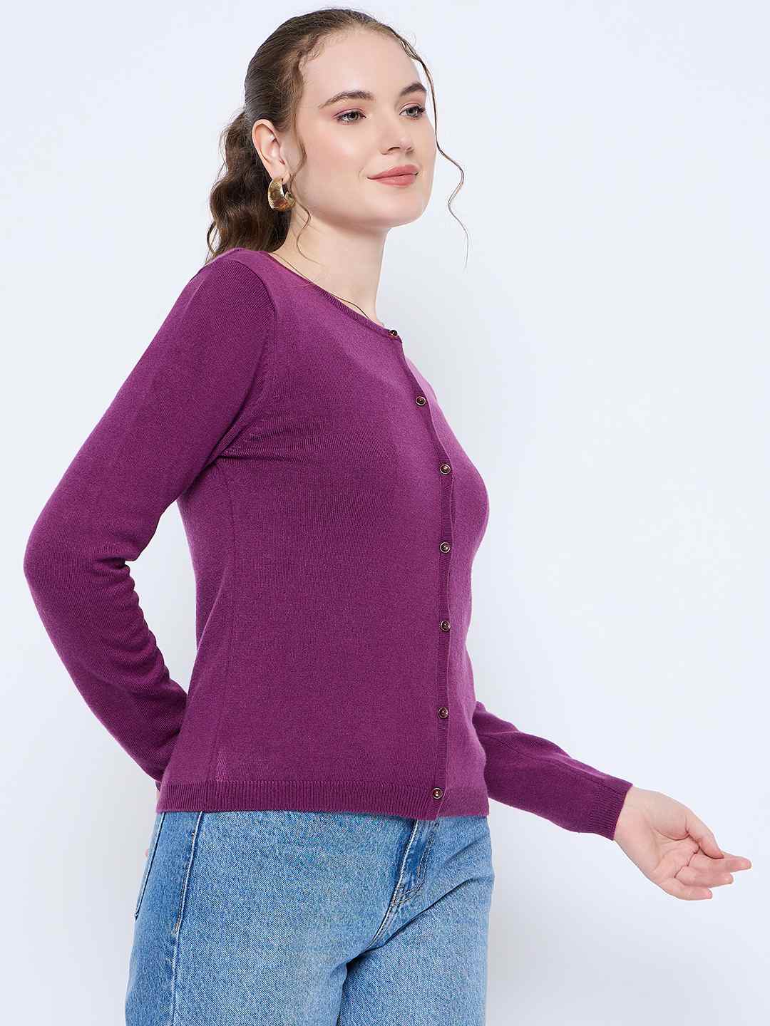 Madame Crew Neck Button Down Dark Purple Cardigan