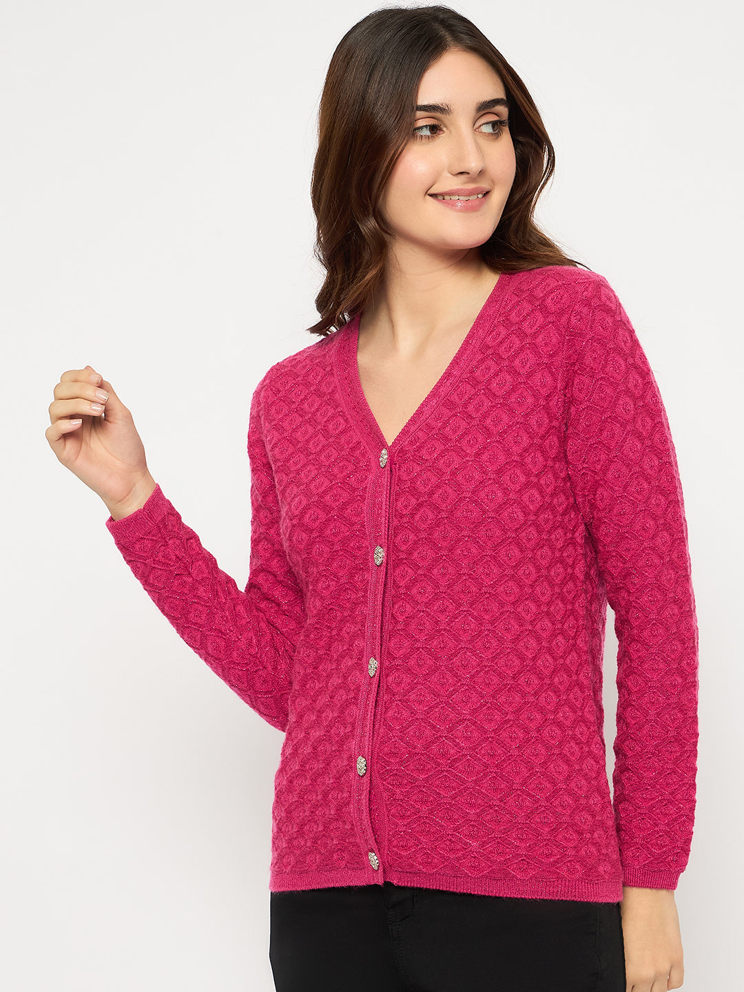 Madame Cable Knit V Neck Hot Pink Cardigan