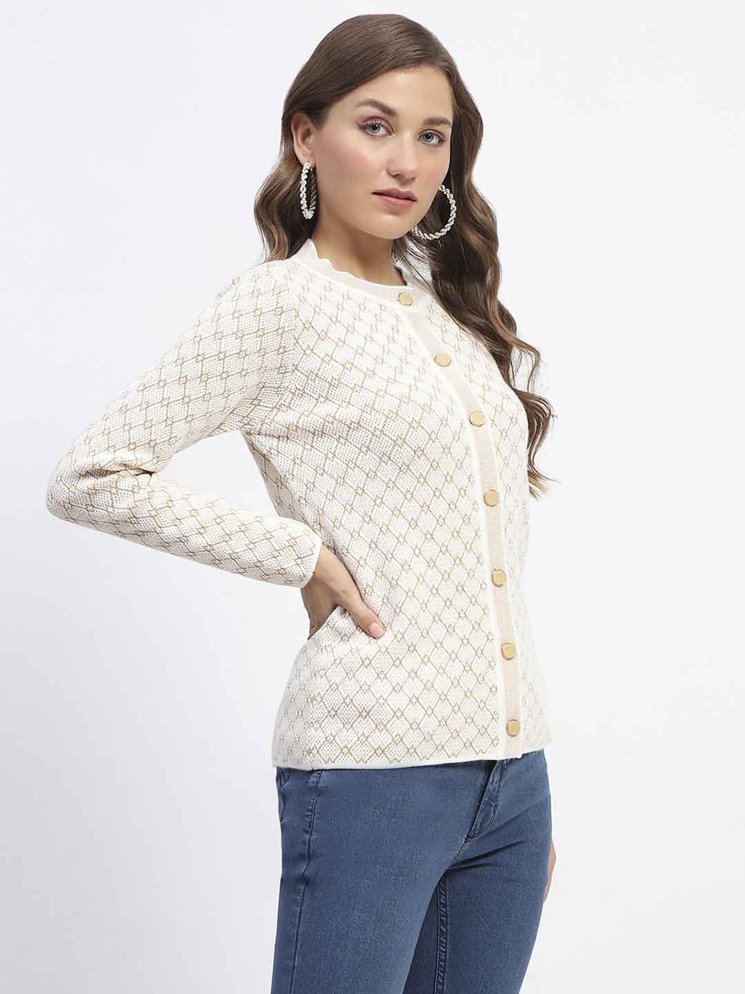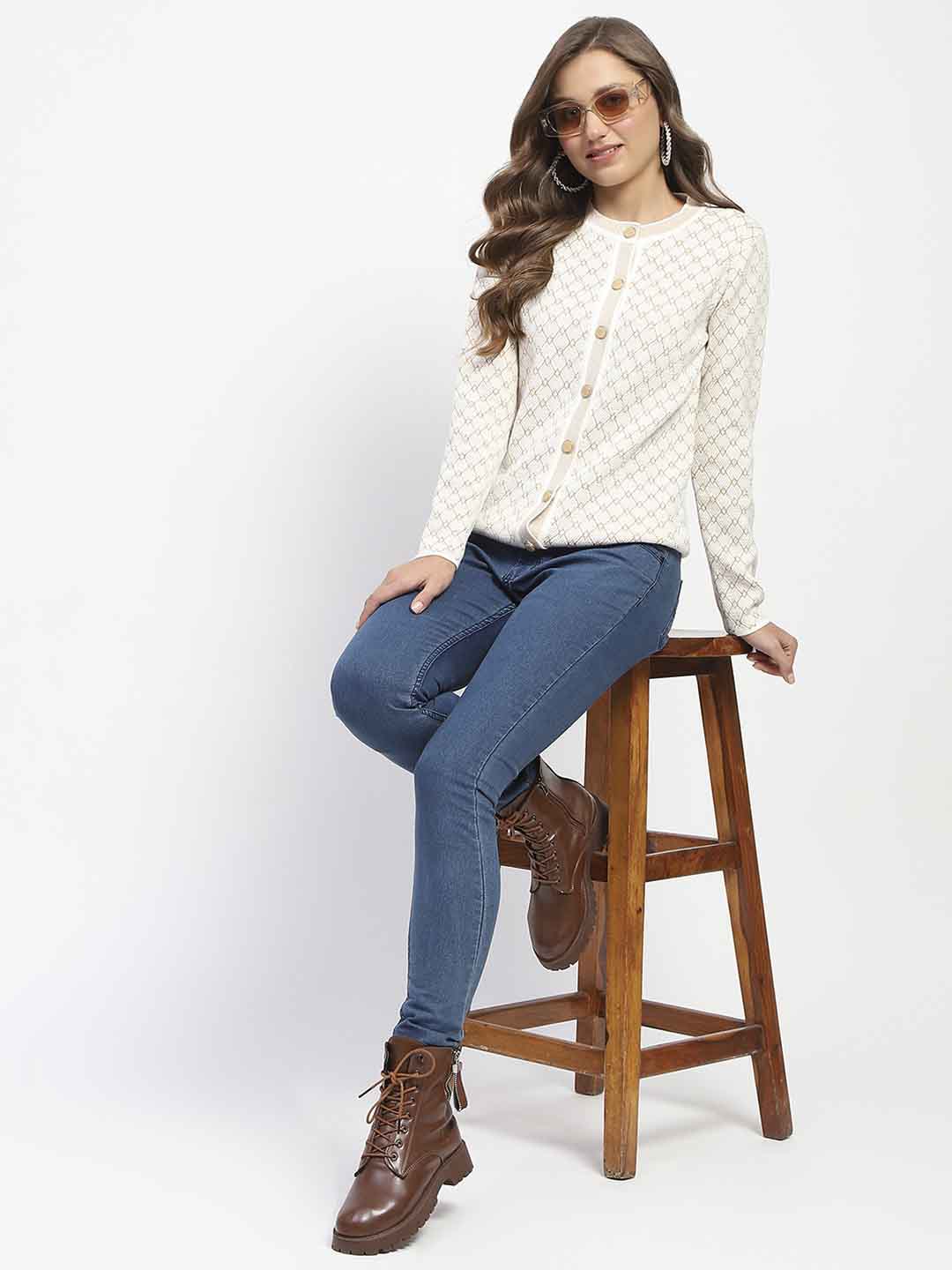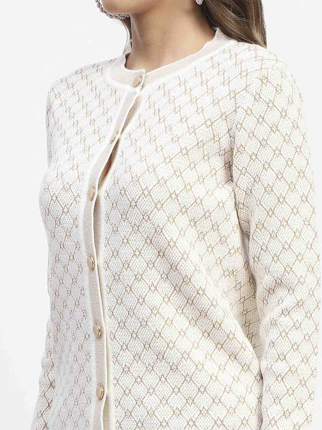 Madame Offwhite Printed Buttoned Cardigan