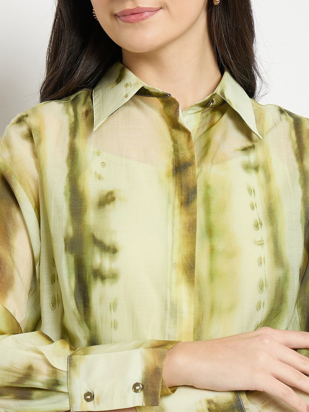 Madame Green Tencel Nylon Blend Printed Shirt