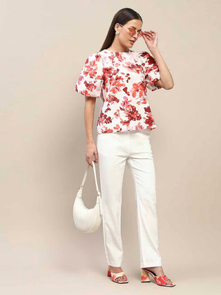 Madame Floral Print Red Cotton Top