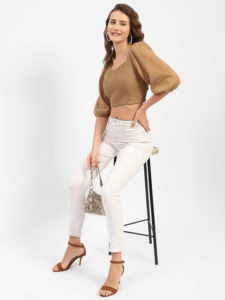 Madame Square Neck Brown Crop Top
