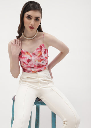 Madame Surplice Neck Hot Pink Floral Bralette Top