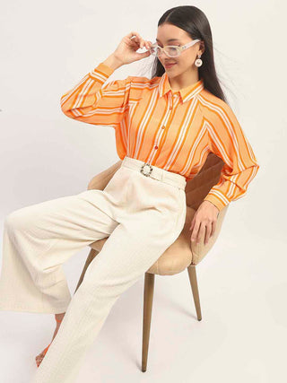 Madame Stripes Printed Orange Shirt