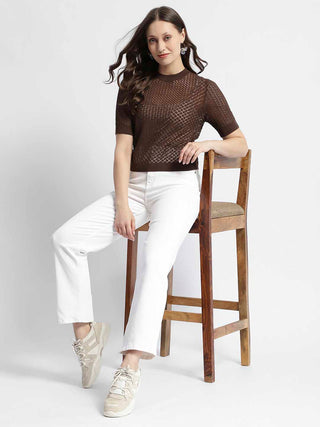 Madame Crew Neck Brown Knit Top