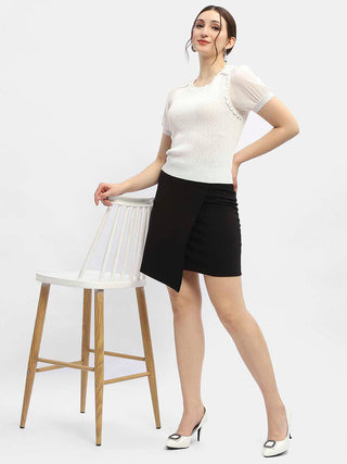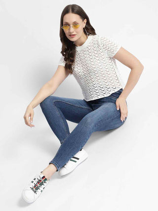 Madame Off White Crochet Top With Short Sleeves