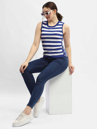 Madame Striped Royal Blue Tank Top