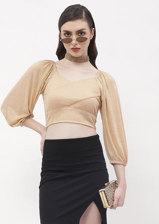 Madame Sweetheart Neck Beige Shimmery Crop Top