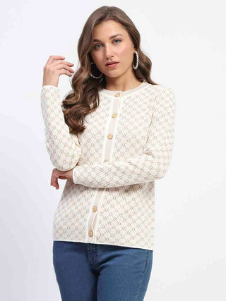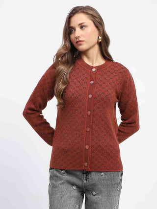 Madame Cable Knit Round Neck Rust Red Cardigan