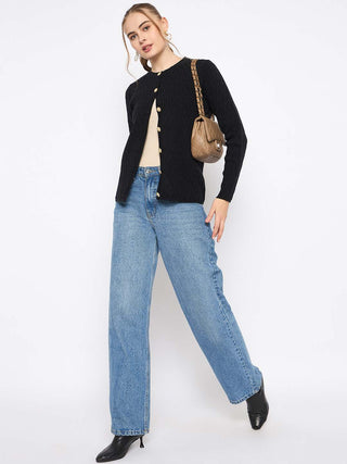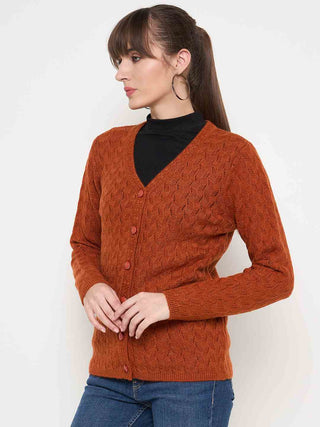 Madame Cable Knit Solid Burnt Orange Buttoned Cardigan