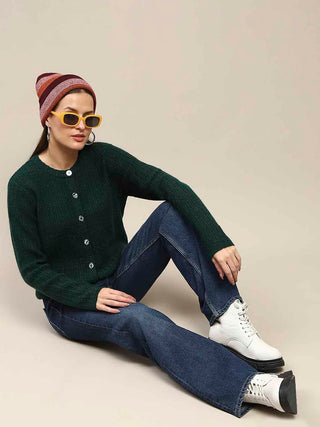 Madame Cable Knit Buttoned Bottle Green Cardigan