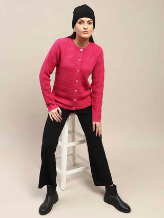 Madame Cable Knit Buttoned Hot Pink Cardigan