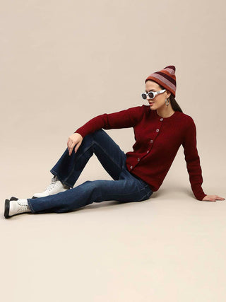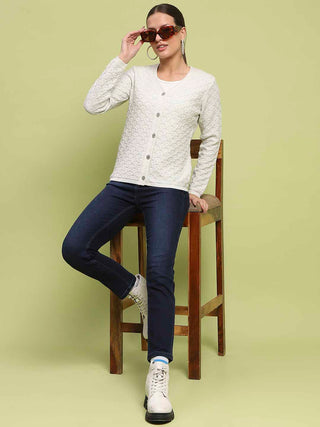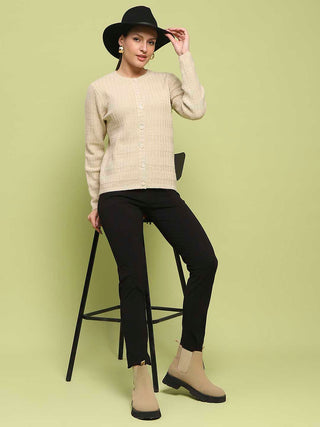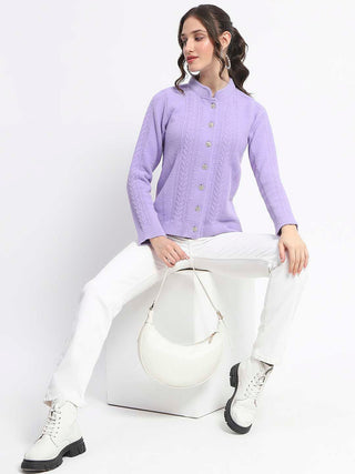 Madame Button Down Cable Knit Solid Lilac Cardigan
