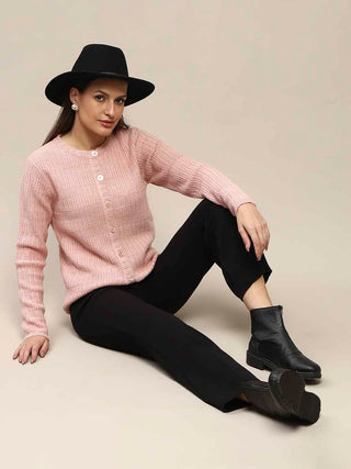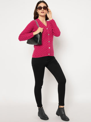 Madame Cable Knit V Neck Hot Pink Cardigan