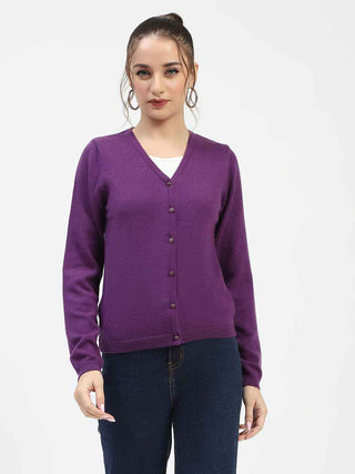 Madame V-Neckline Button-Up Plum Cardigan