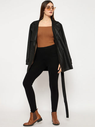 Madame Straight Fit Solid Black Faux Leather Trouser