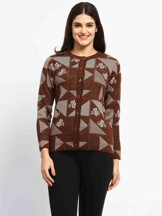 Madame Striped Brown V-Neck Buttoned Cardigan
