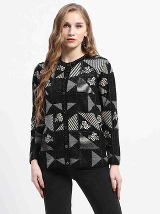 Madame Cable Knit V Neck Black Acrylic Blend Cardigan