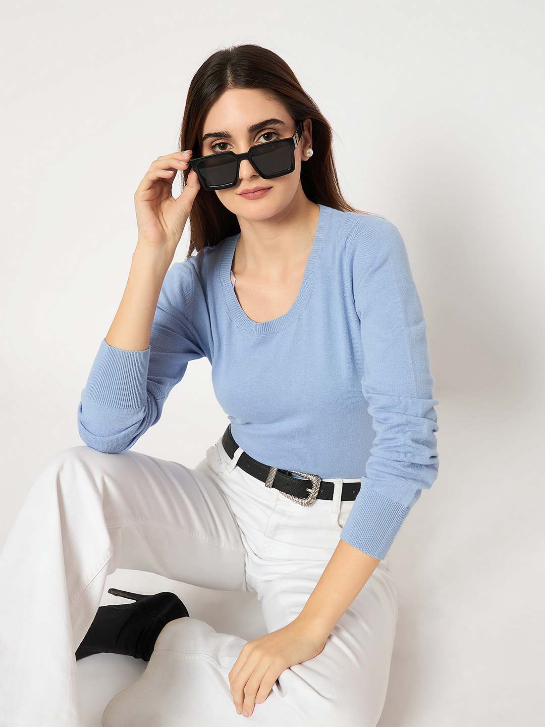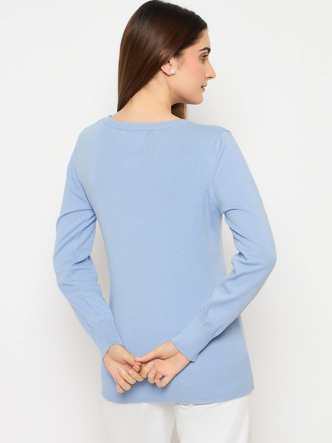 Madame Round Neck Ribbed Cuff Sky Blue Sweater