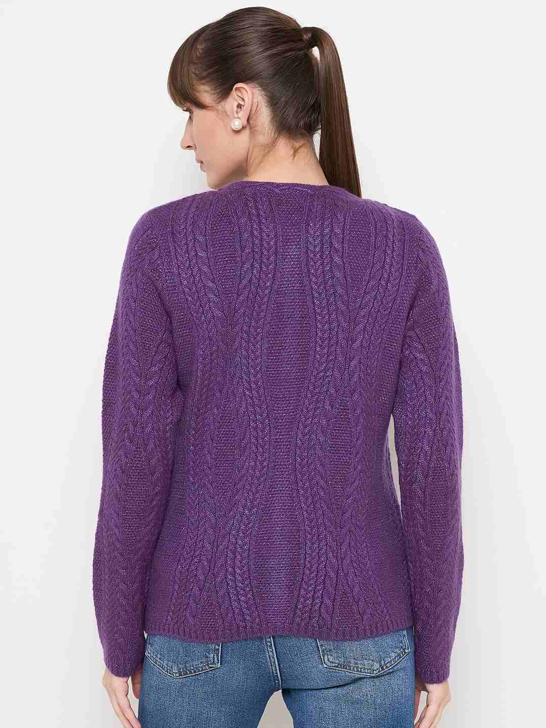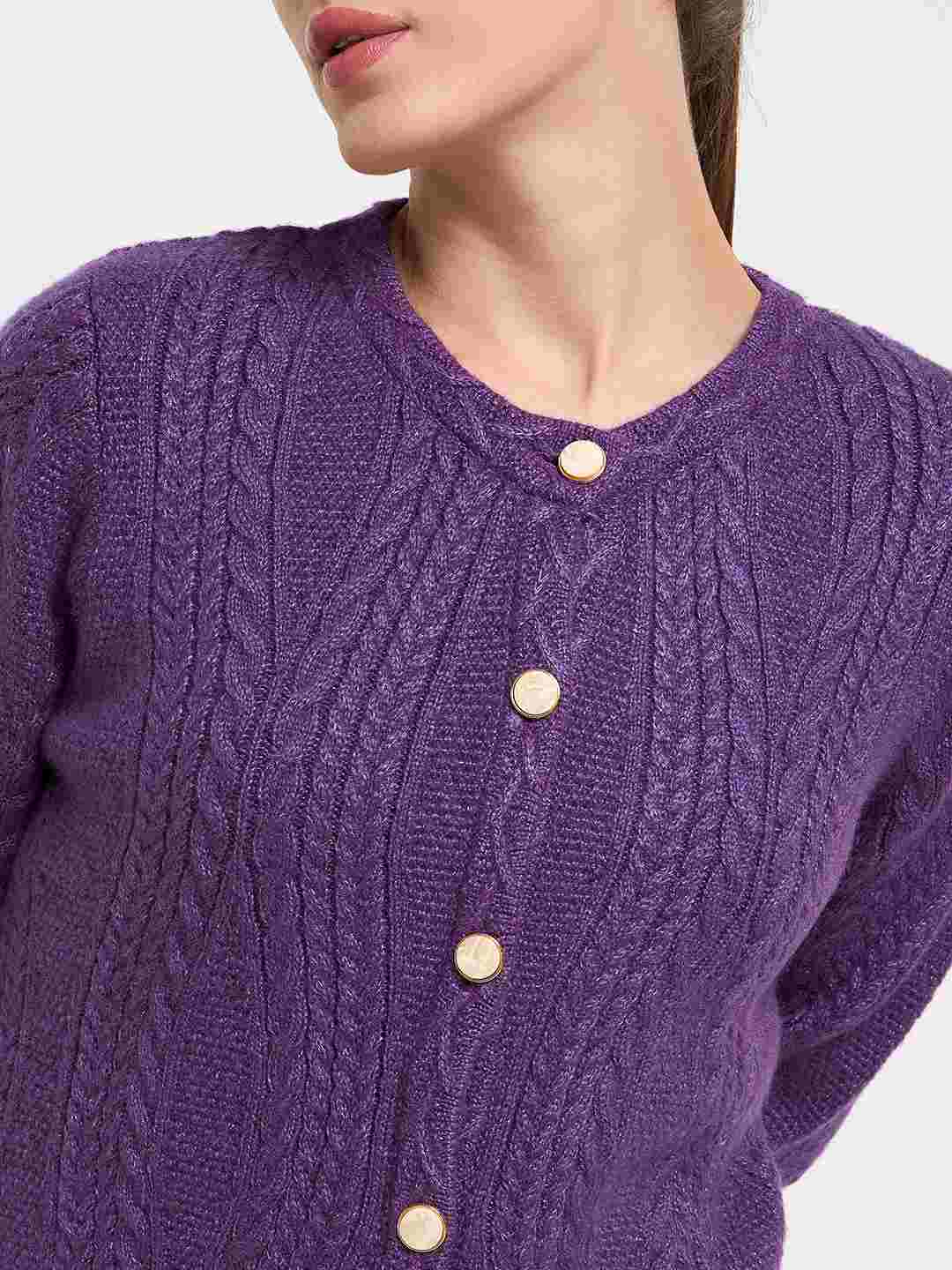 Madame Cable Knit Plum Acrylic Blend Cardigan