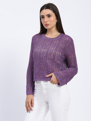 Madame Round Neck Ribbed Cuff Coral Sweater