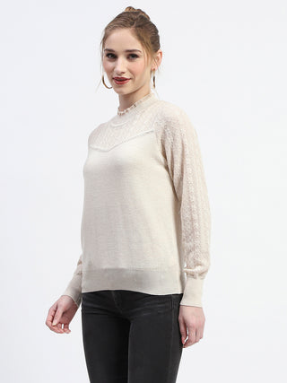 Madame Round Neck Ribbed Cuff Off White Sweater