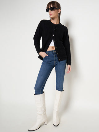 Madame Crew Neck Button Down Dark Purple Cardigan