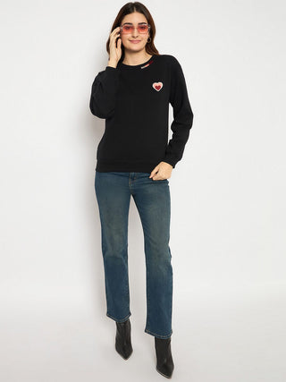 Madame Fleece Placement Print Black Hooded Sweatshirt