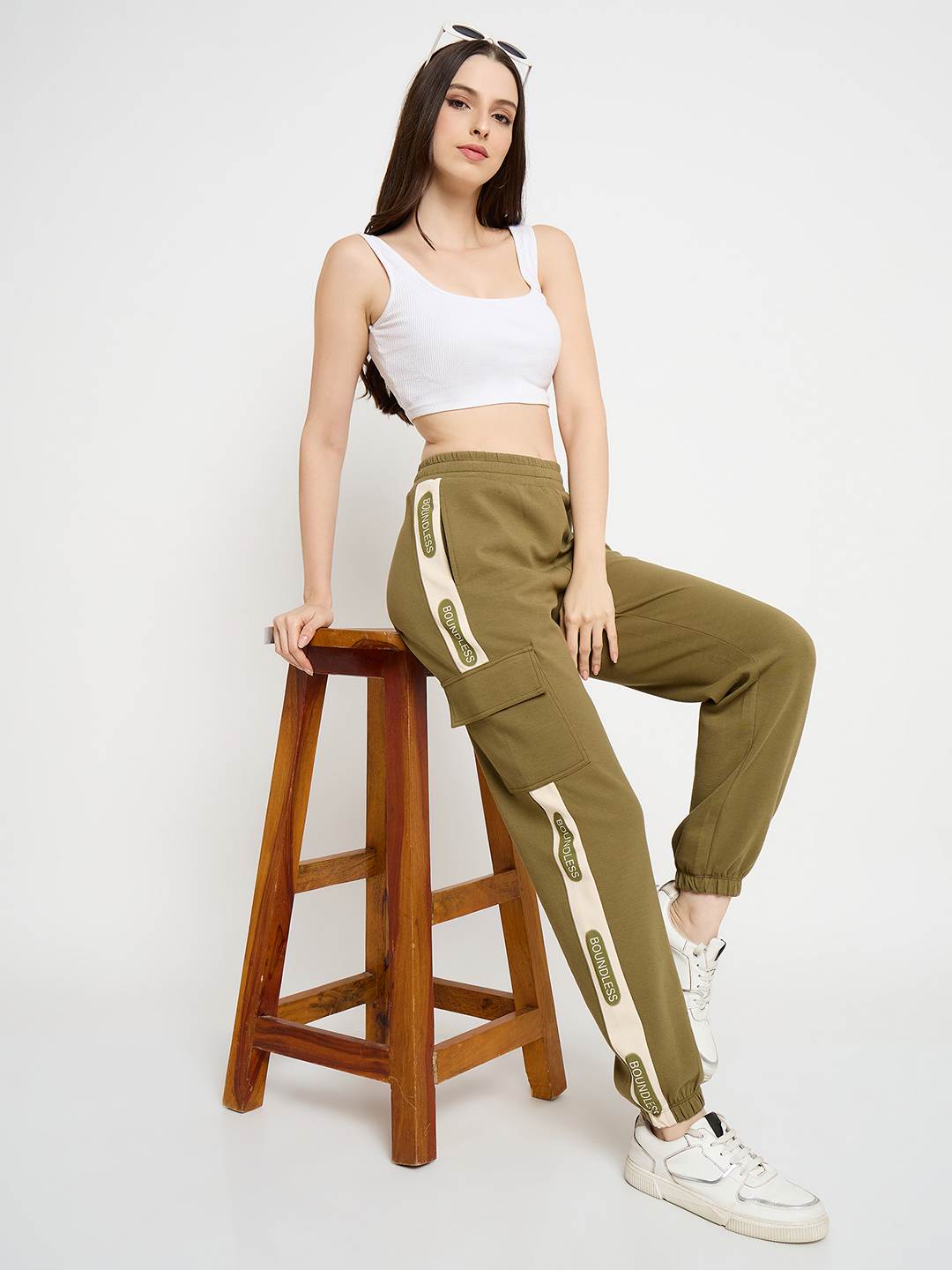 mSECRET Graphic Print Olive Green Tapered Track Bottoms