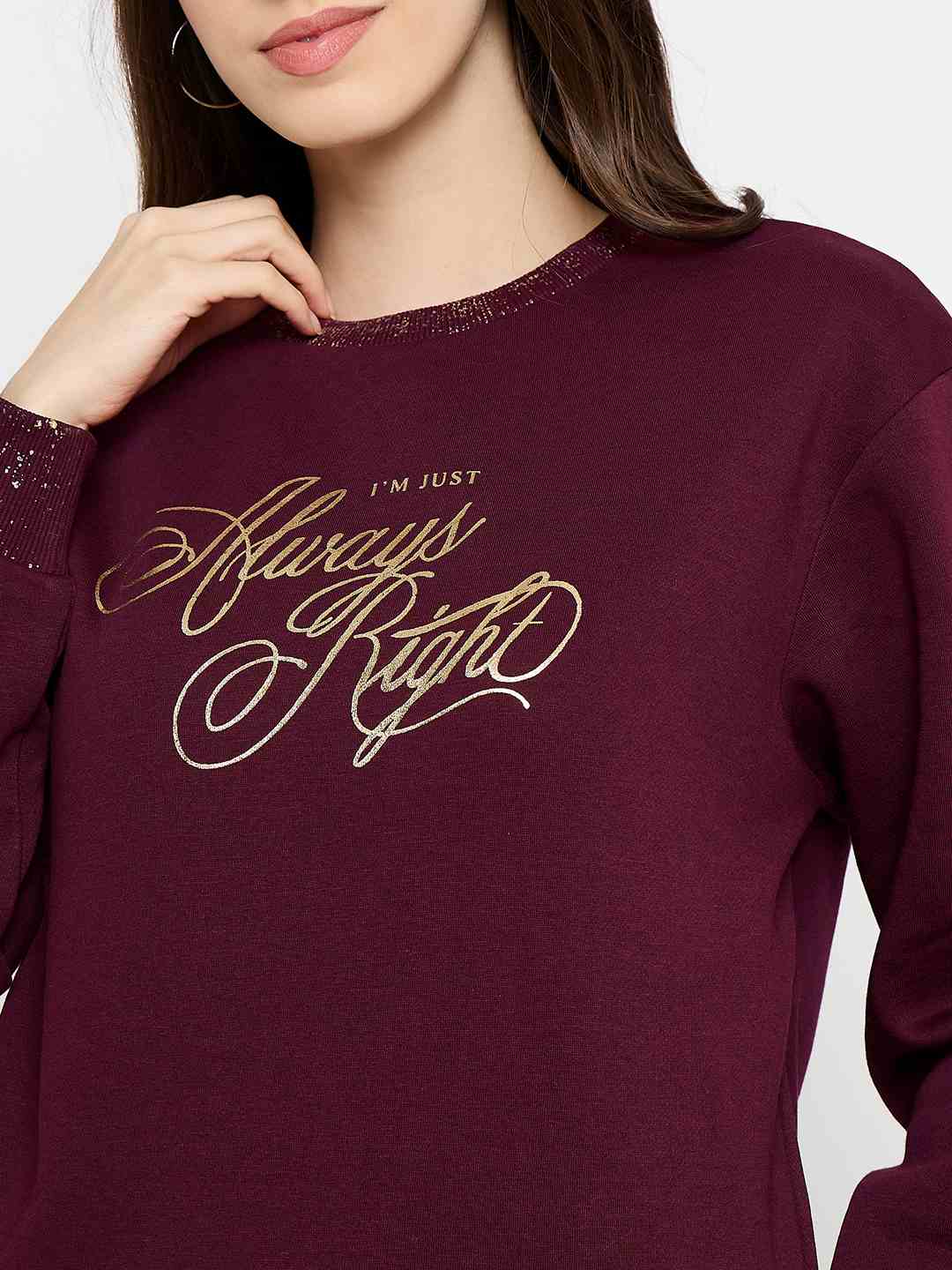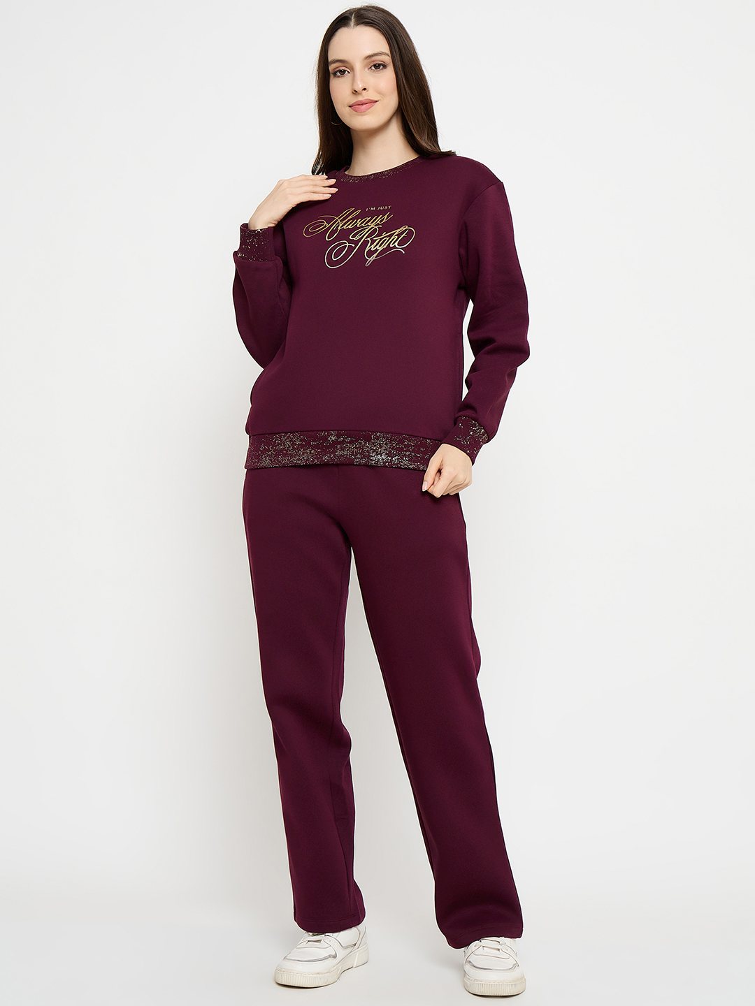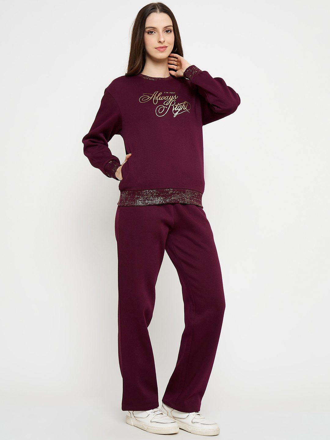 mSECRET Typography Print Sweatshirt and Straight Bottoms Plum Night Suit