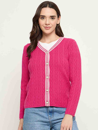 Madame V-neck Hot Pink Cardigan