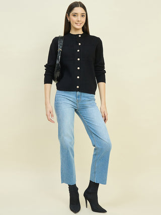 Madame Round Neck Black Knit Cardigan