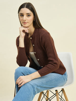 Madame Round Neck Brown Buttoned Cardigan