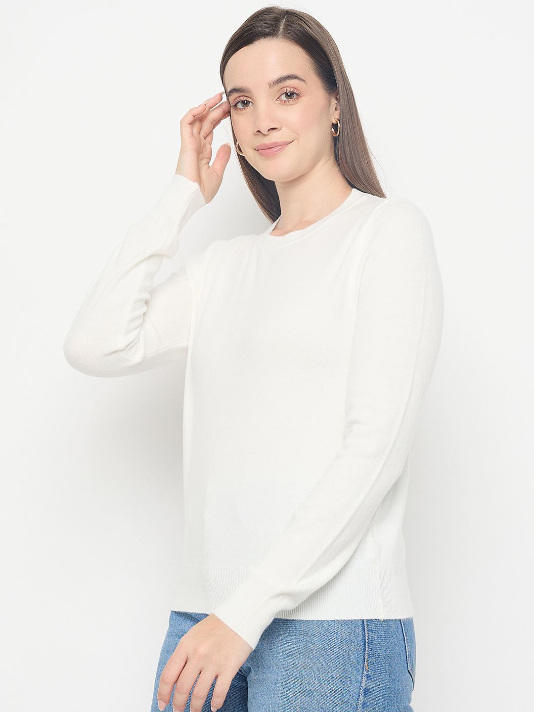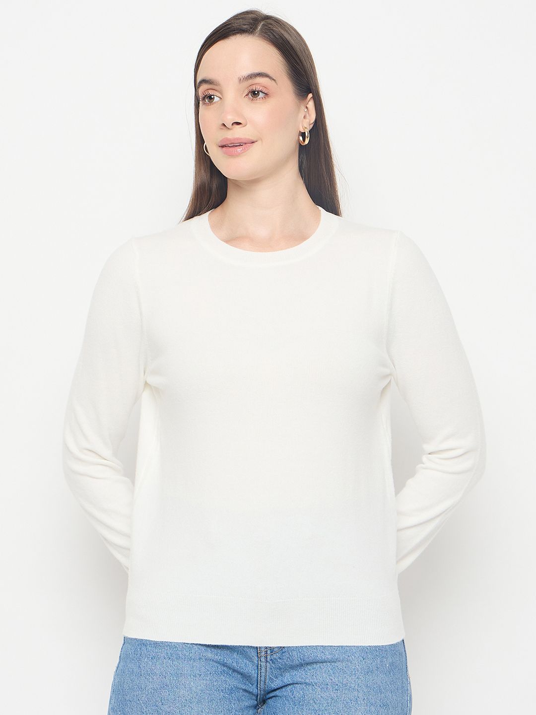 Madame Solid White Pullover Sweater
