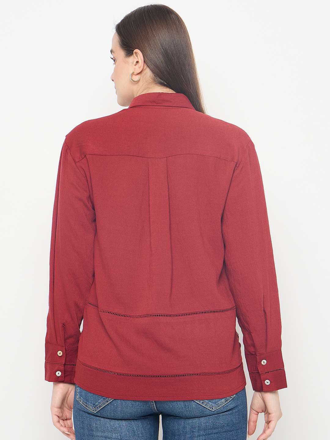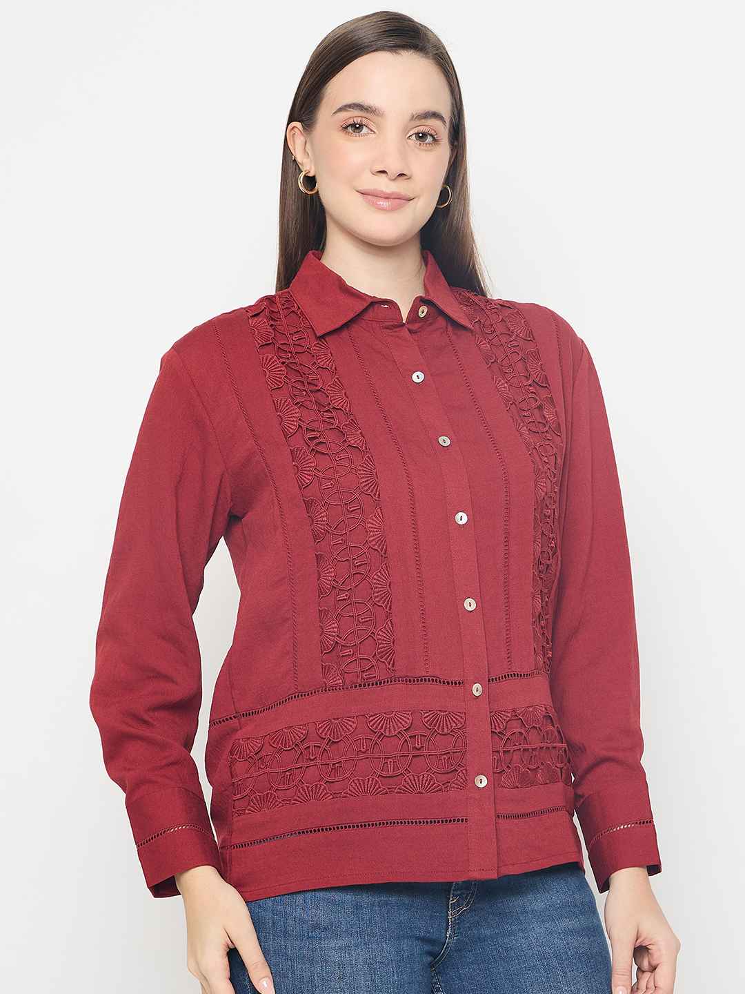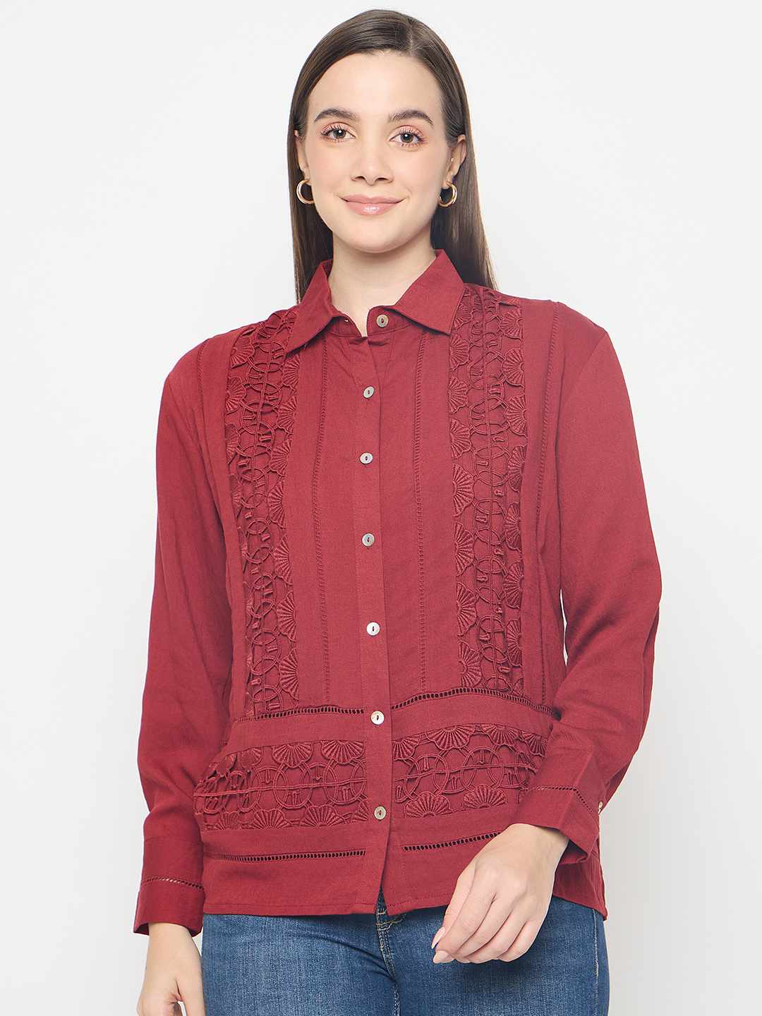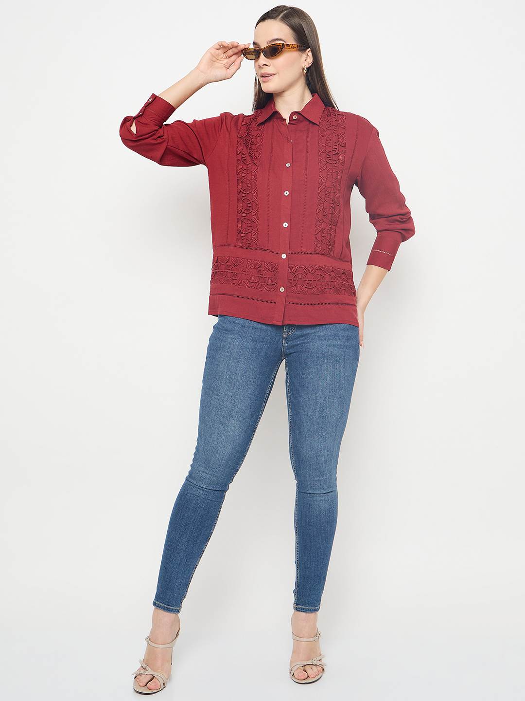 Madame Lace Detailed Rayon Blend Rosewood Shirt