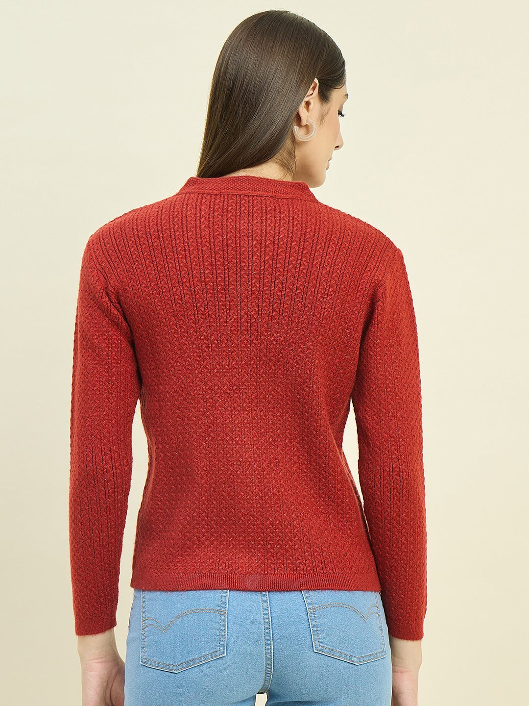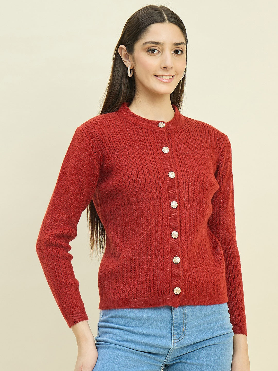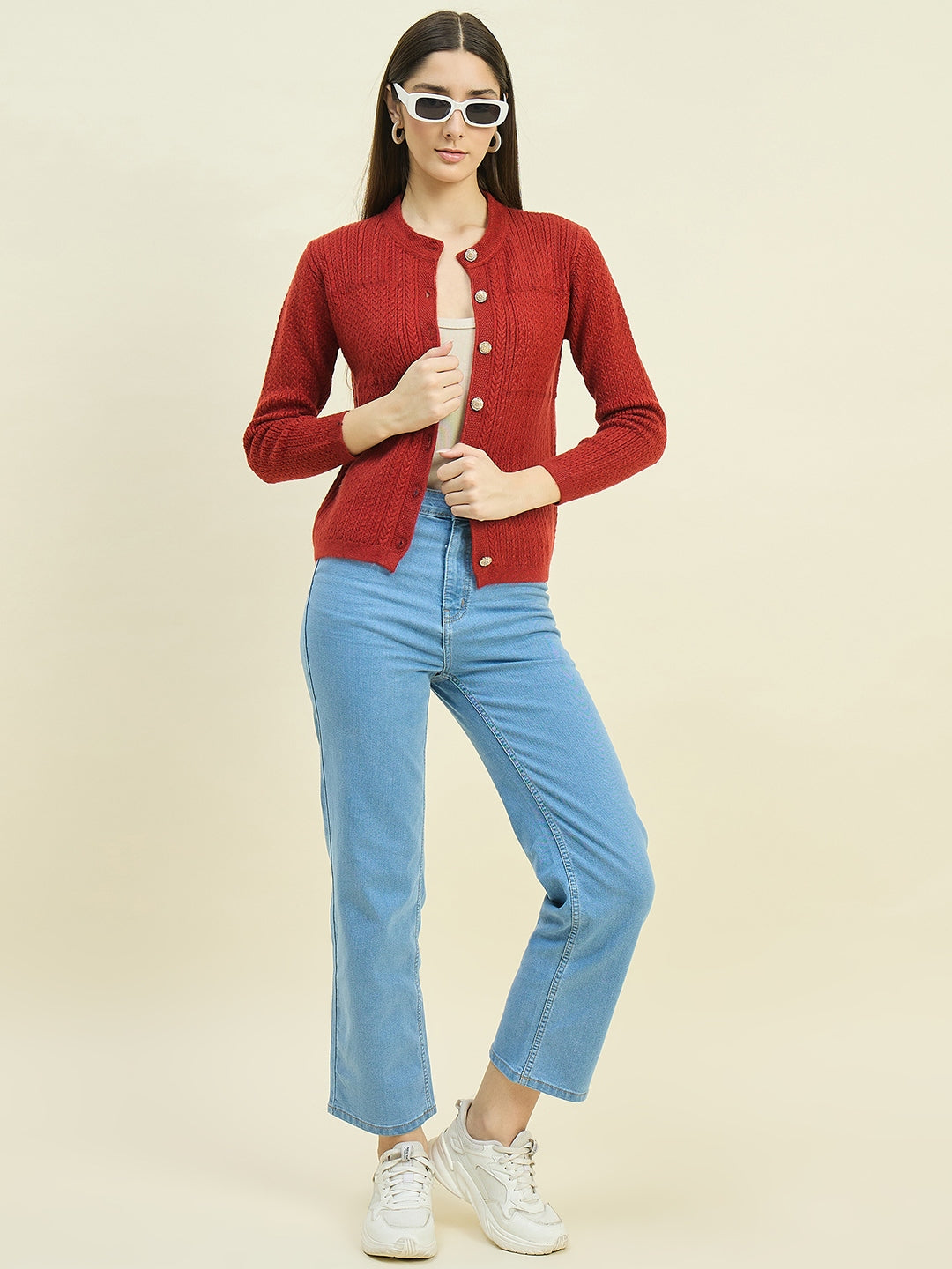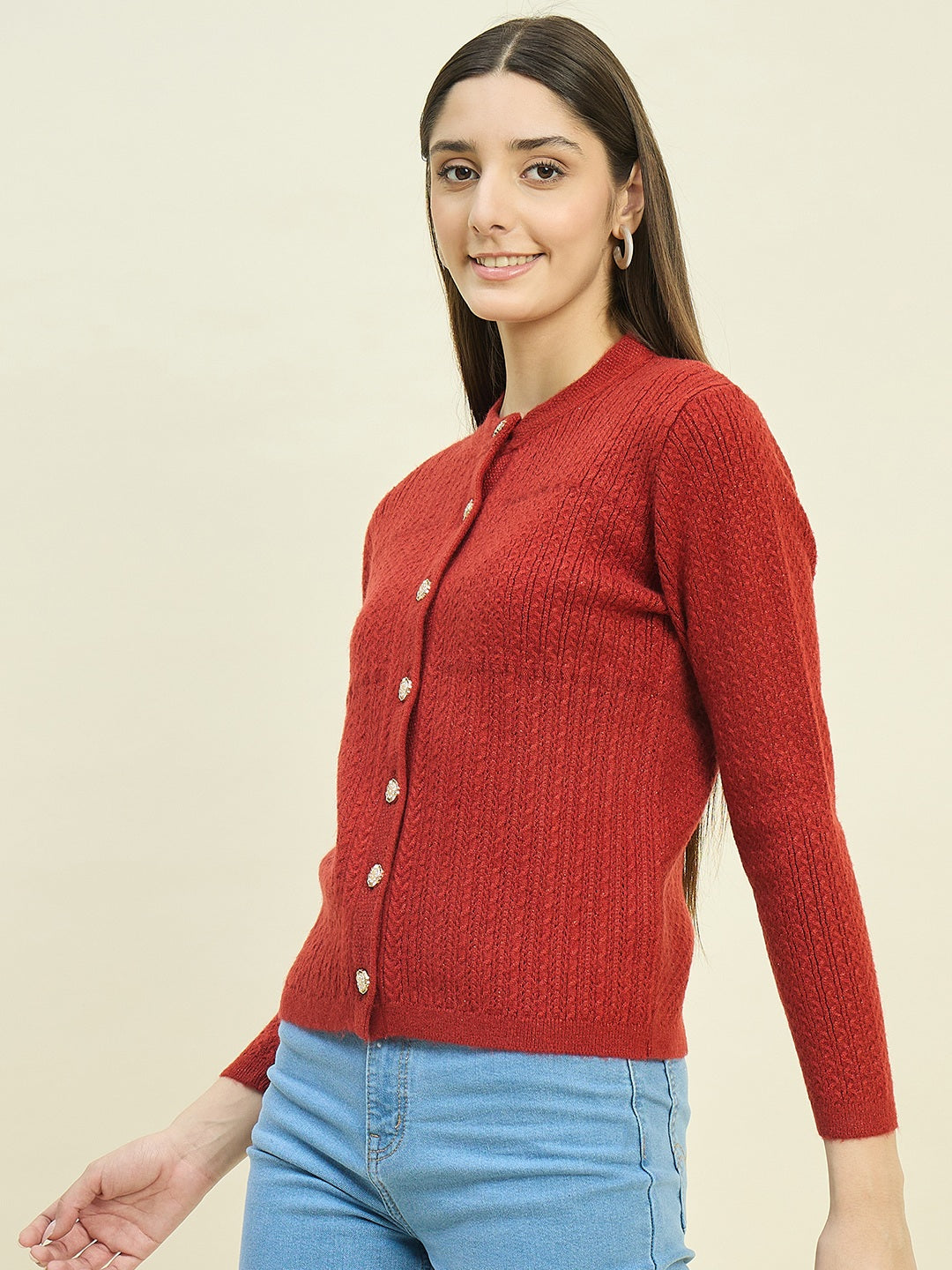 Add effortless style to your wardrobe with Madame rust round neck cardigan. Soft and comfortable, it pairs perfectly with tops, dresses, or tees, making it ideal for casual layering or chic everyday looks.