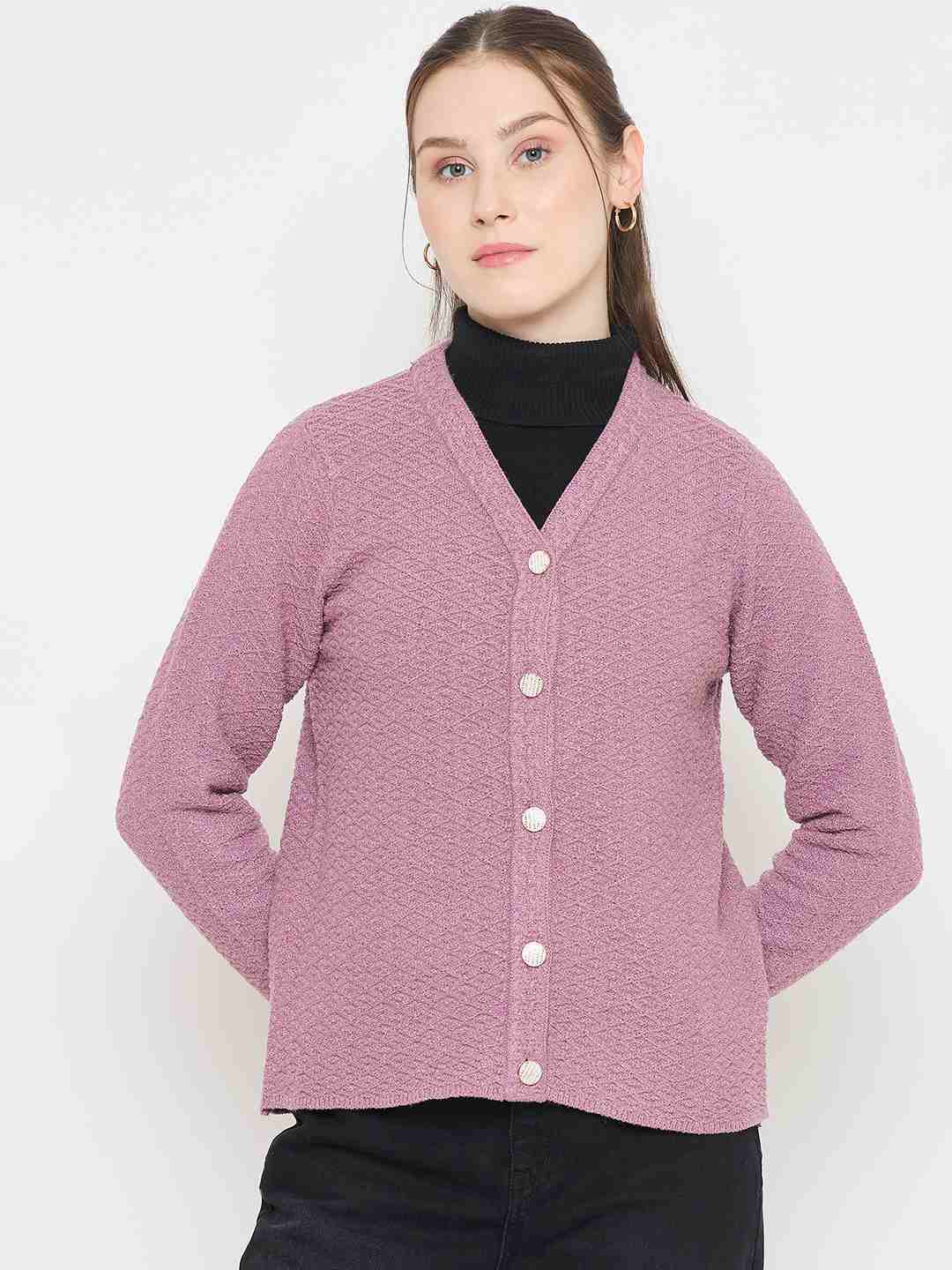Madame V-Neck Pink Cardigan with Buttons