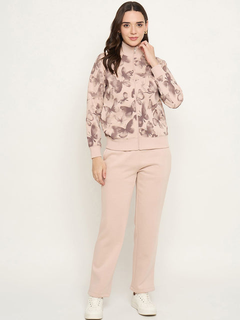 mSECRET Botanical Print Top and Solid Bottoms Pink Night Suit