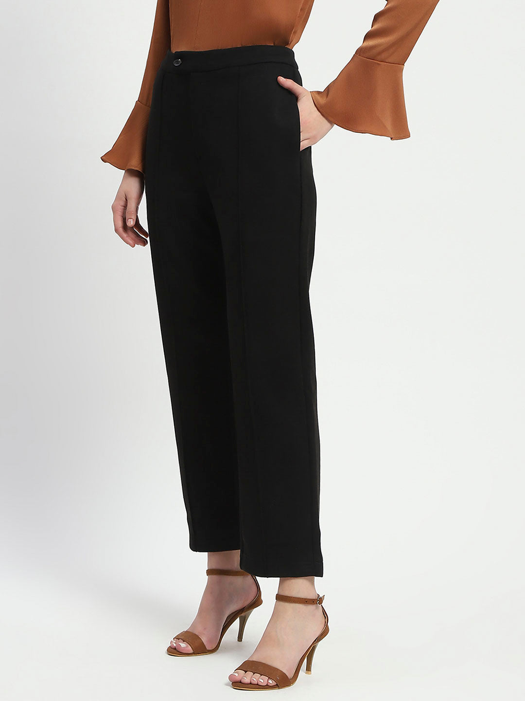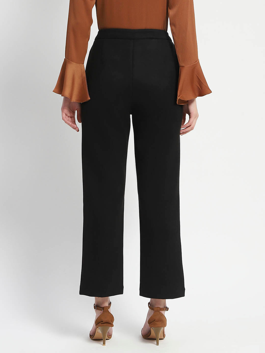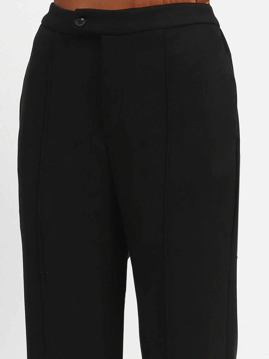 Madame Solid Black Pleated Gurkha Trousers