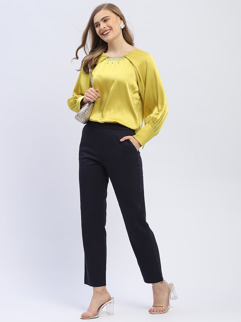 Madame Rhinestone Embellished Lime Green Raglan Style Sleeve Top