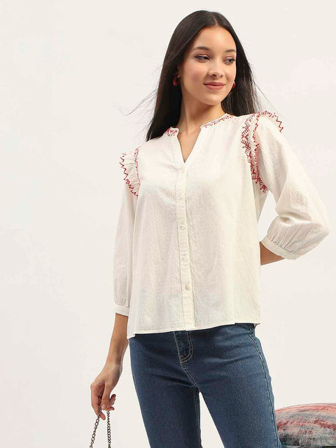Madame Embroidery Detailing Off White Top