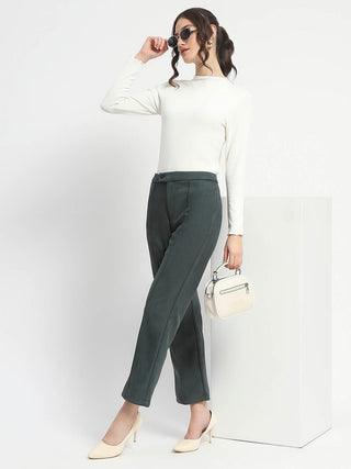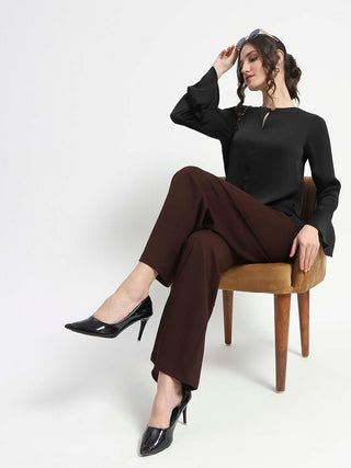 Madame Straight Fit Elasticated Waist Solid Coffee Trousers