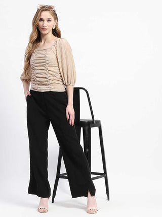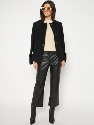 Madame Straight Fit Solid Black Faux Leather Trouser