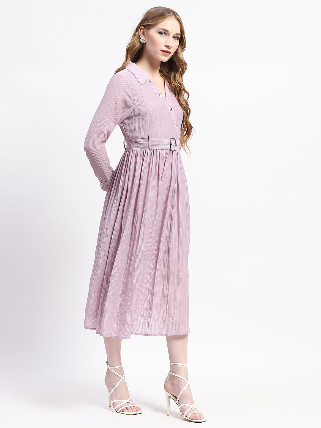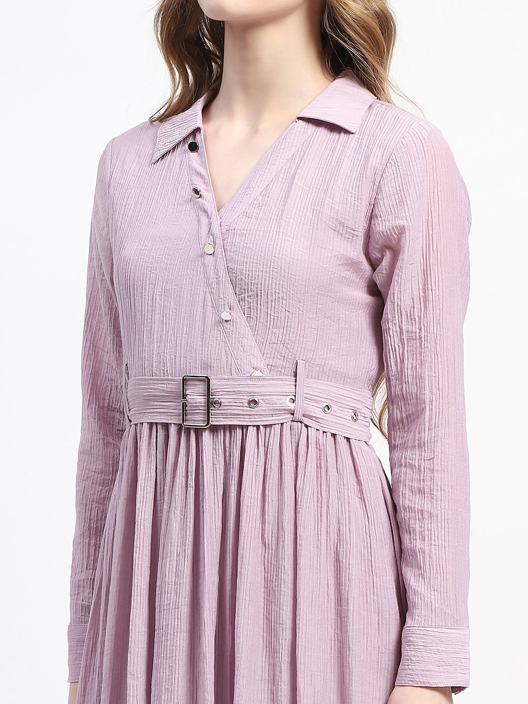 Madame Pleated Cotton Blend Mauve Shirt Dress