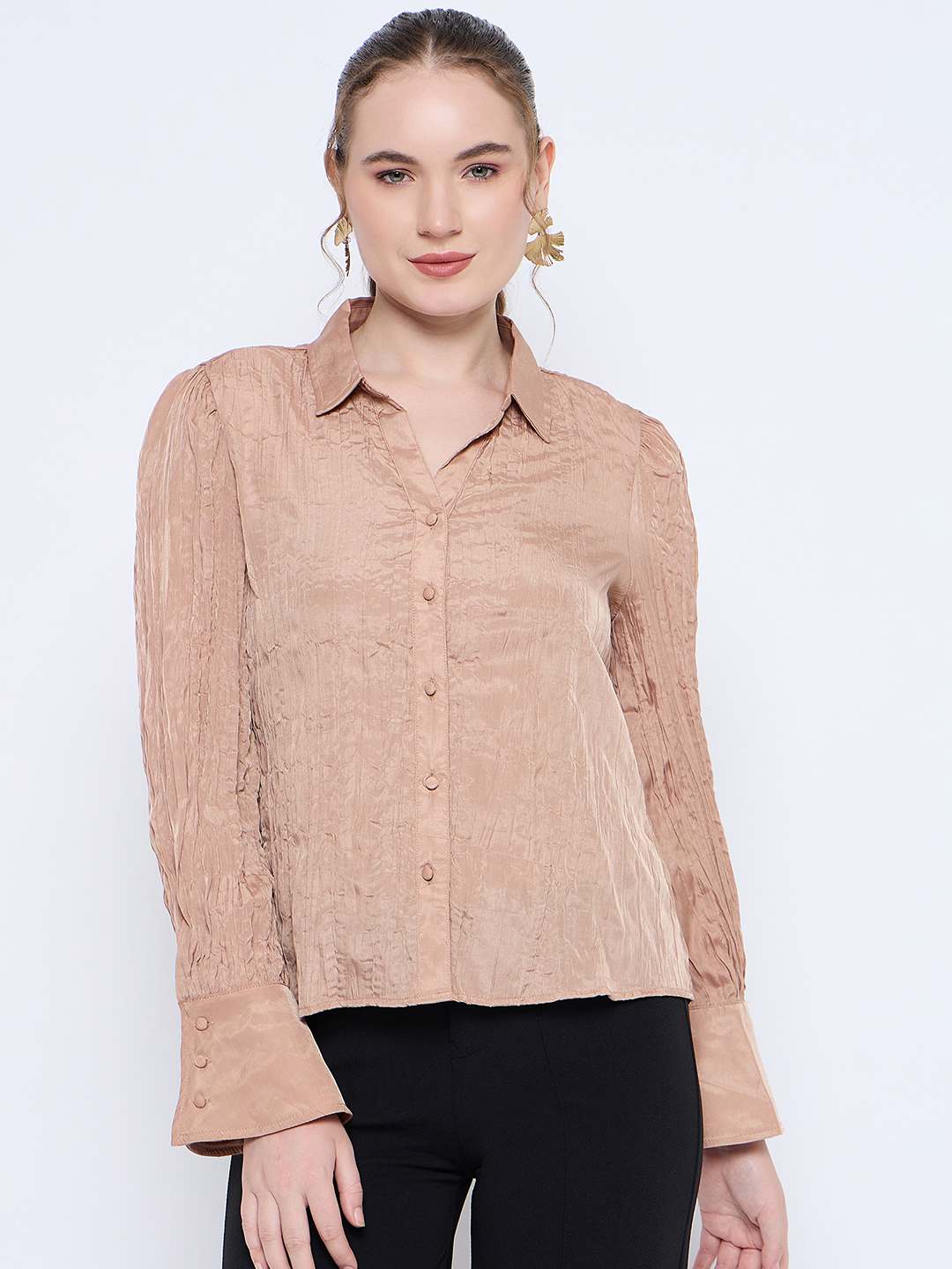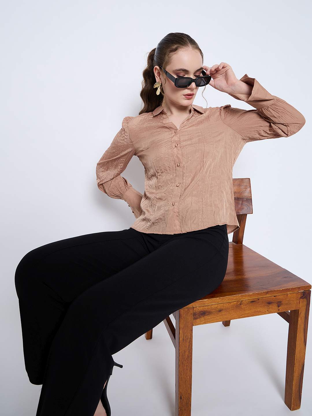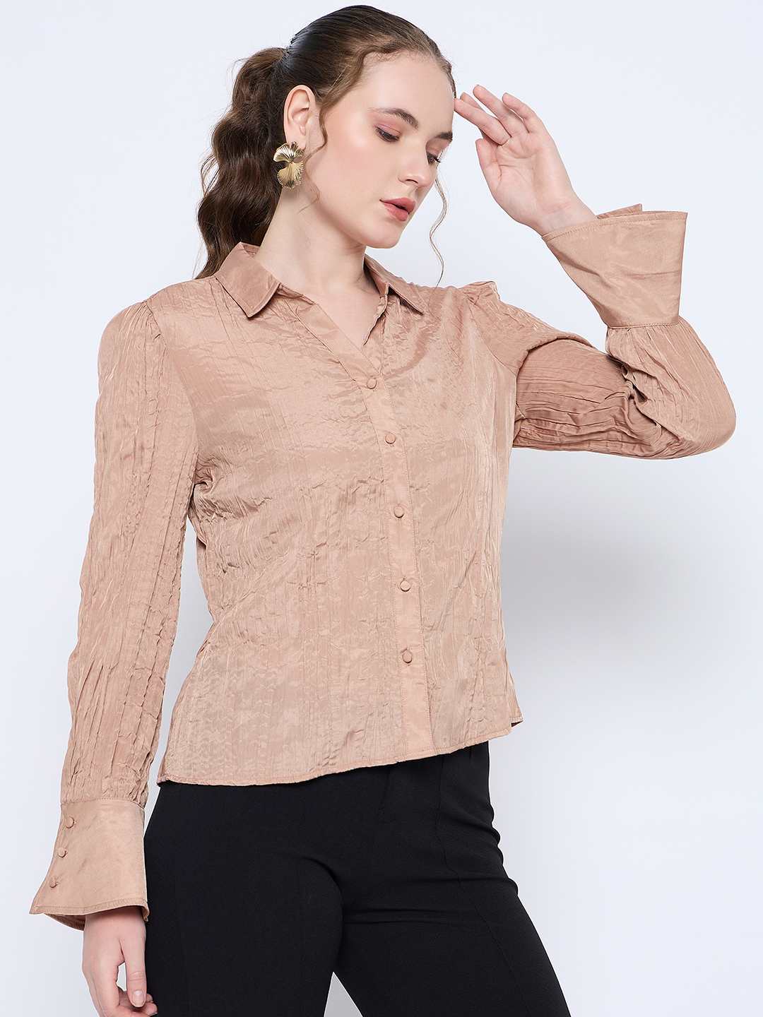 Madame Crushed Tissue Flounce Sleeve Beige Shirt