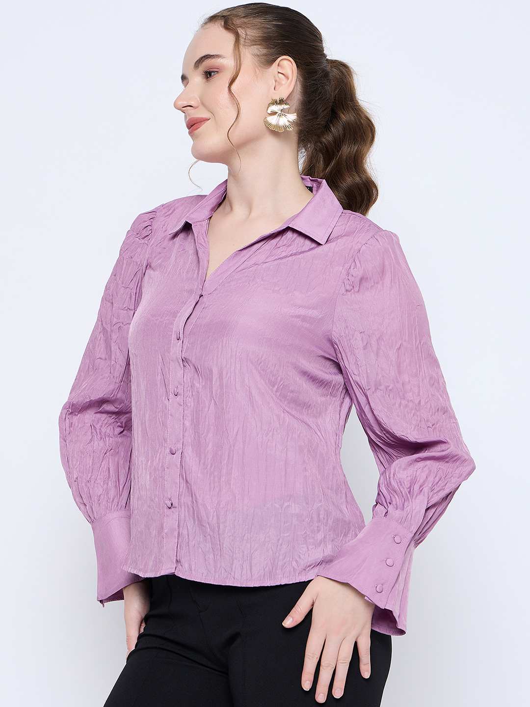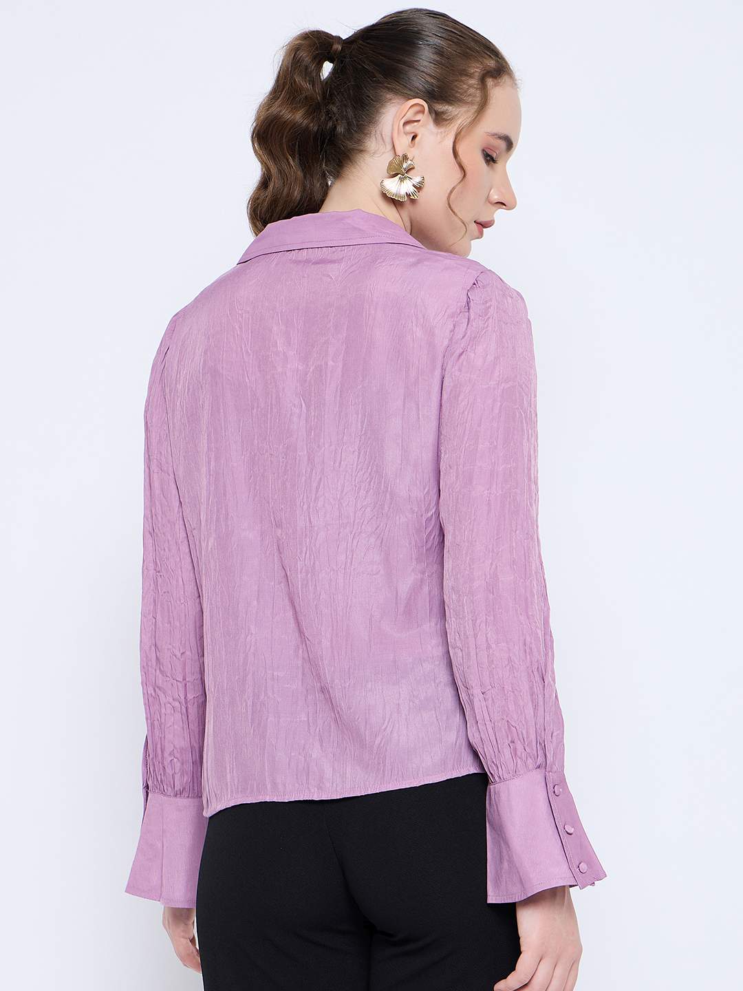 Madame Crushed Tissue Flounce Sleeve Muave Shirt