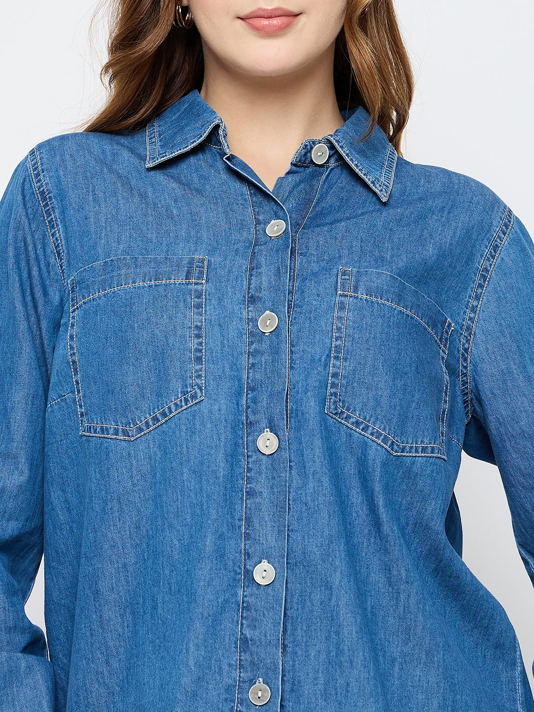 Madame Cotton Mid Blue Denim Shirt