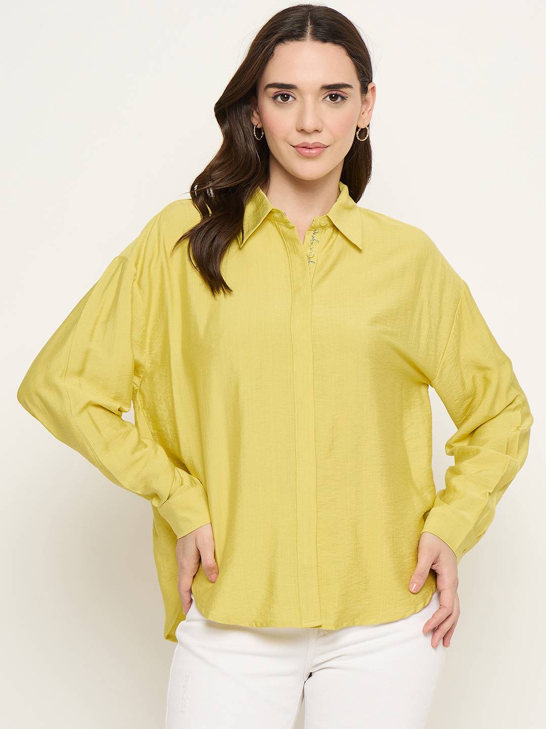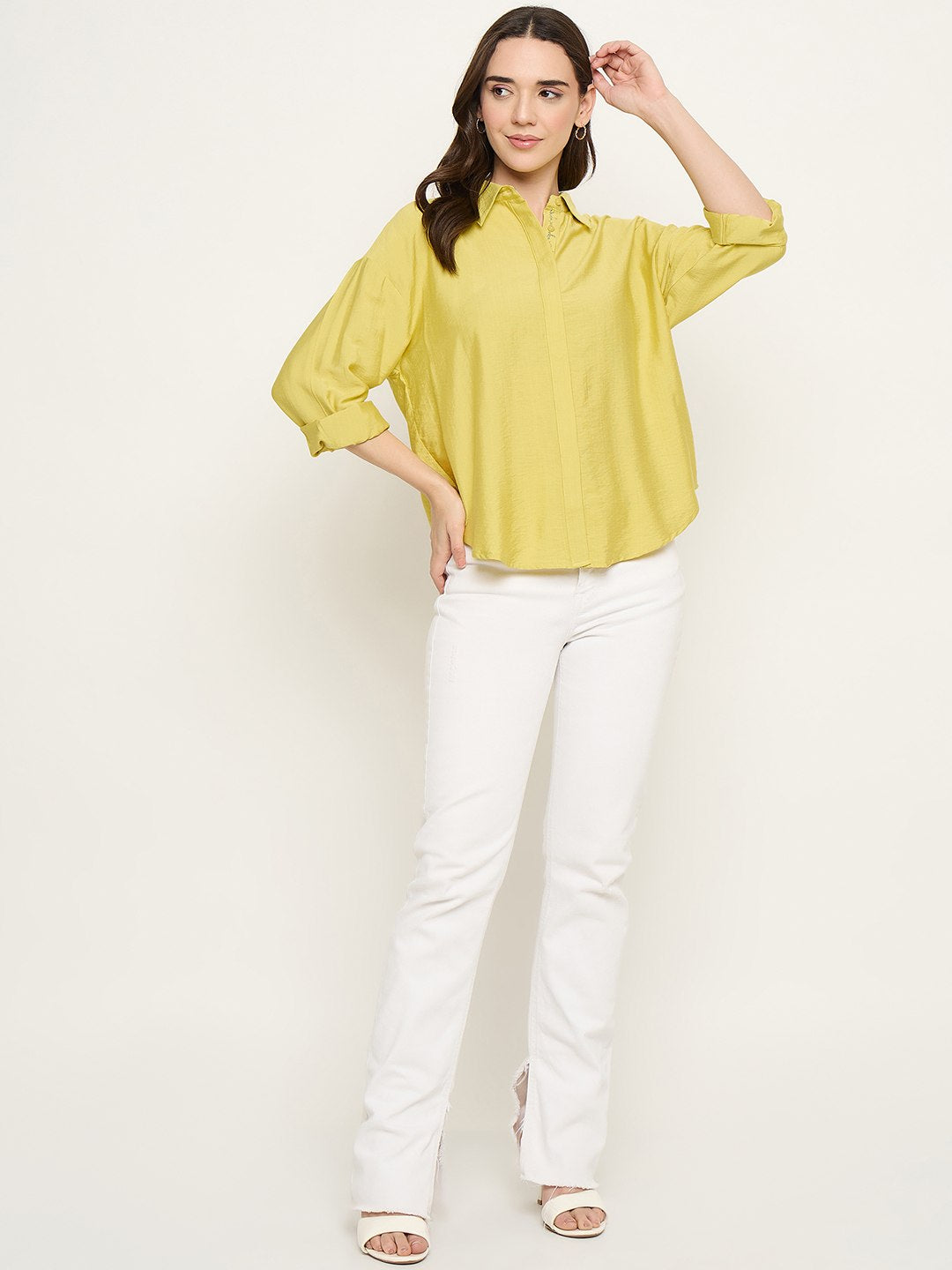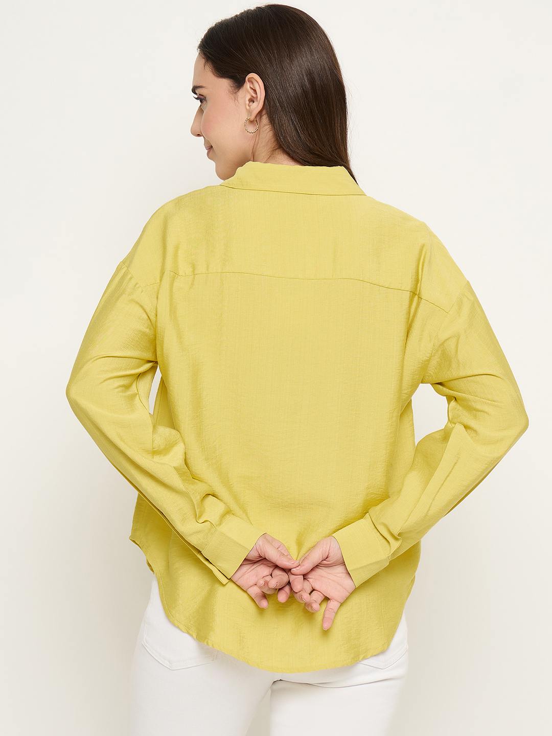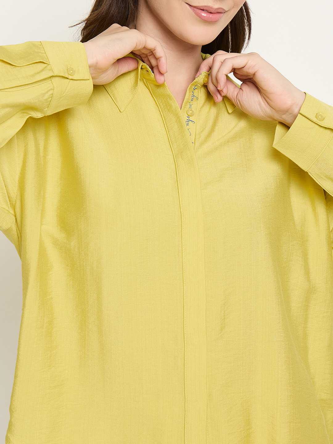 The Madame Printed Placket Lemon Yellow Shirt features soft breathable fabric, a printed placket, and a relaxed yet tailored fit. Ideal for office wear, casual outings, and everyday styling.