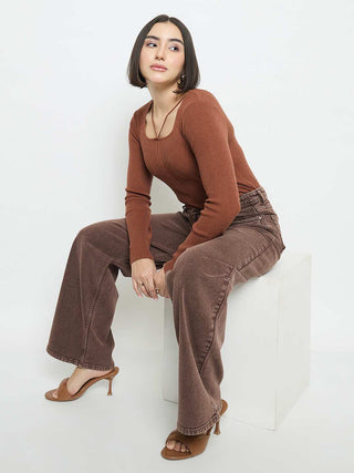 Madame Cotton Blend Stone Wash Straight Fit Dark Blue Denim Jeans
