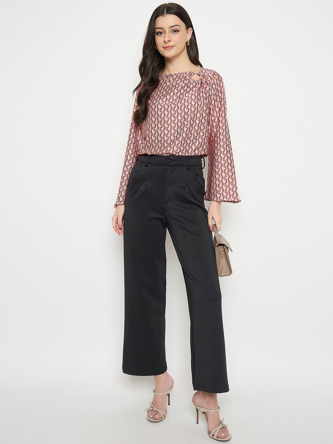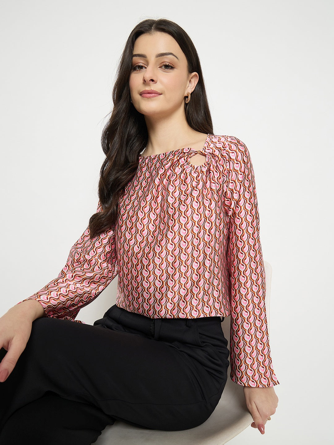 Madame multi color chevron print top features a vibrant pattern that adds playful movement to your look. The relaxed silhouette ensures comfort, making it perfect for effortless day-to-evening styling.